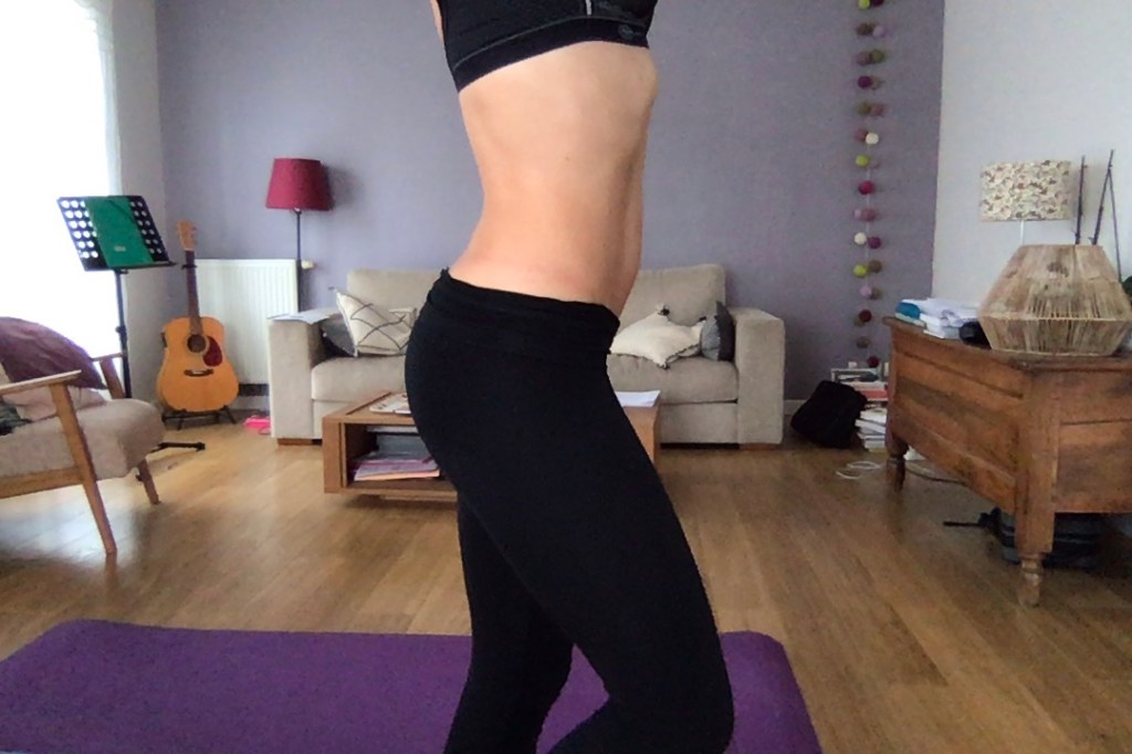 les pompes sur genoux, le crunch inversé, le burpee, le ciseau costal, le double crunch, le gainage ventral et costal, le jumping jack, le mountain climber, le crunch abdos croisé, le soulevé de fesses, les fentes sautées. 40′ 3 séries de 12′ avec 2′ de recup